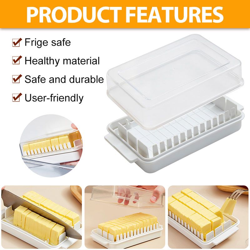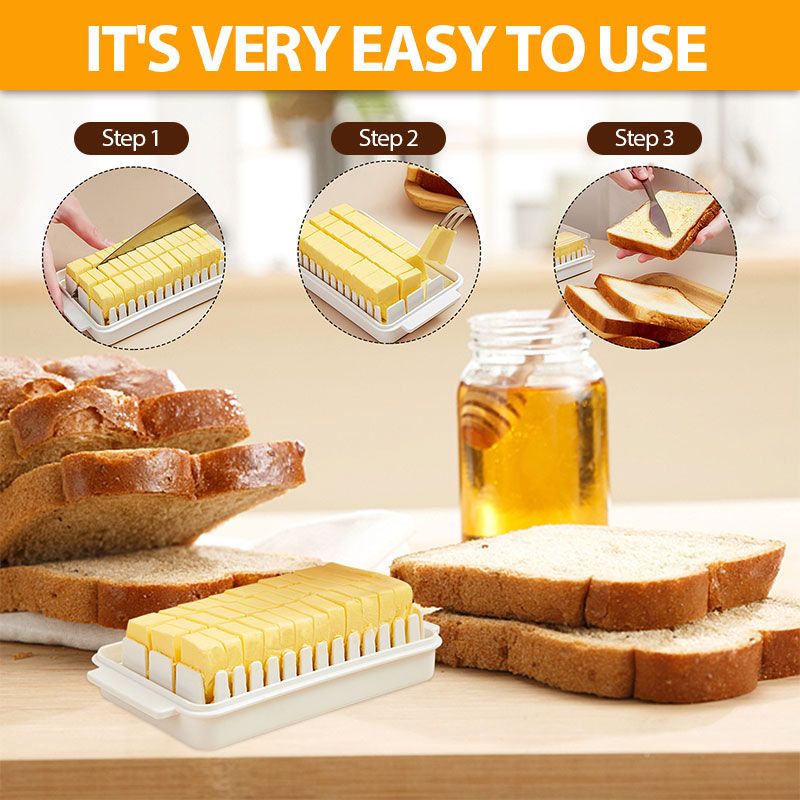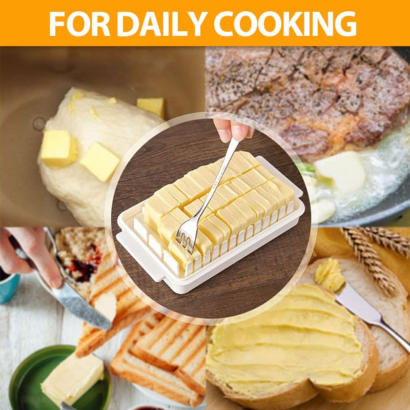 • UPDATED VERSION Butter dishes with cutting case. The butter must be softened and placed in the middle of the cutting mesh. It doesn't need any tools, it can cut.