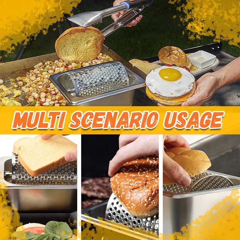 - As the wheel turns,the melted butter spreads across the perforations and onto the bread. It is great for entertaining, tailgating, or for big events.